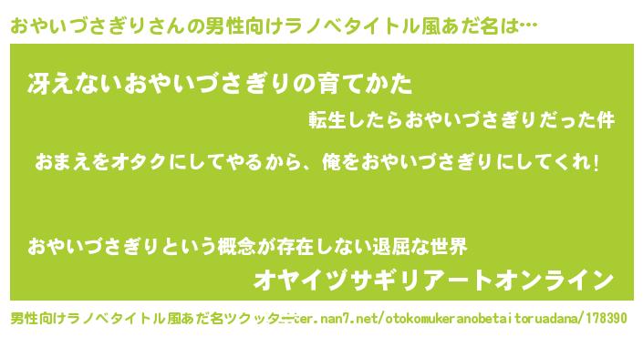 | 女子向けラノベタイトル風あだ名 | 『おやいづさぎり恋絵巻』 |