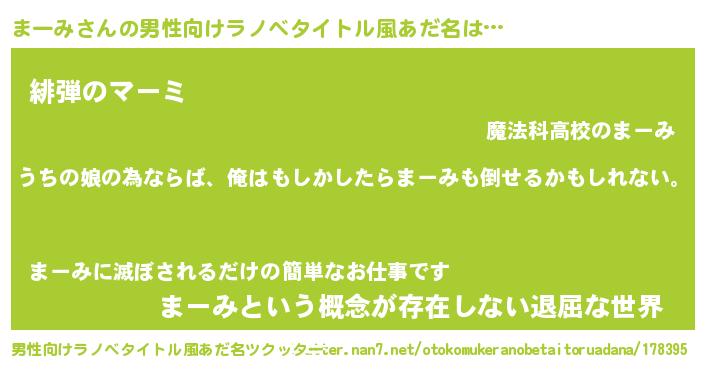 | 女子向けラノベタイトル風あだ名 | 『まーみ伯爵の花嫁』『まーみの契約王妃』 |