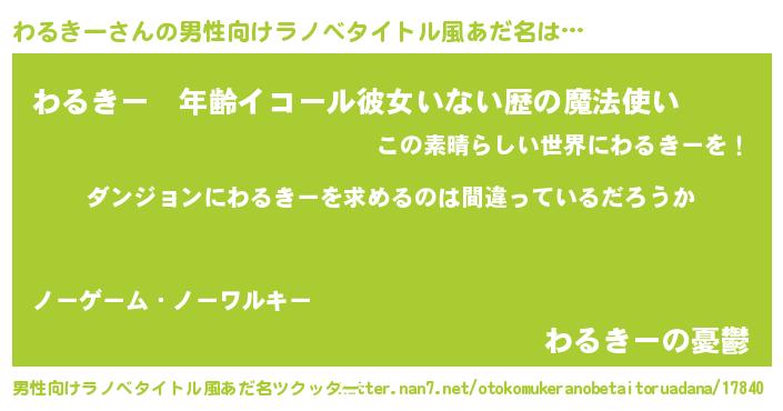 | 女子向けラノベタイトル風あだ名 | 『わるきーの卵を拾いまして』 |