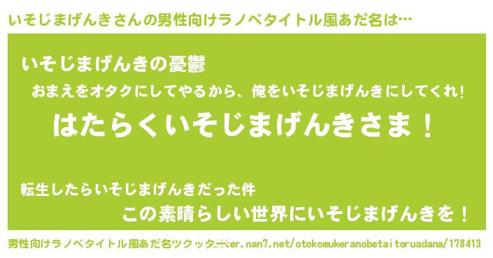 | 胡散臭い通販商品みたいなあだ名 | 『必ず成功する水晶球…その名も「いそじまげんき」』 |