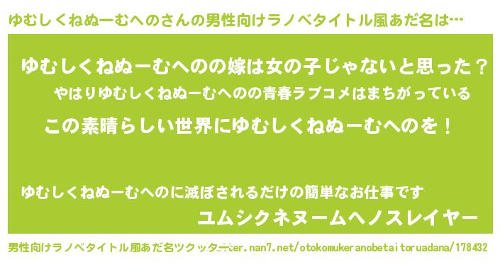 | 女子向けラノベタイトル風あだ名 | 『悪役ゆむしくねぬーむへのに転生したようですが、知った事ではありません』 |