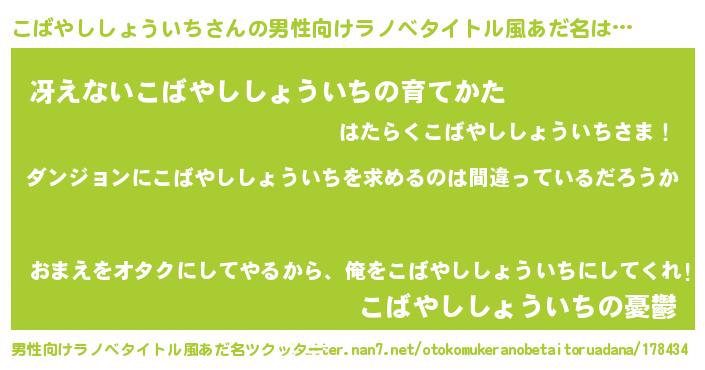 | 女子向けラノベタイトル風あだ名 | 『こばやししょういちは平凡を望む』 |