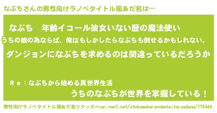 | 意味不明あだ名 | 『とにかく怪しいなぶち』『自称なぶち』 |