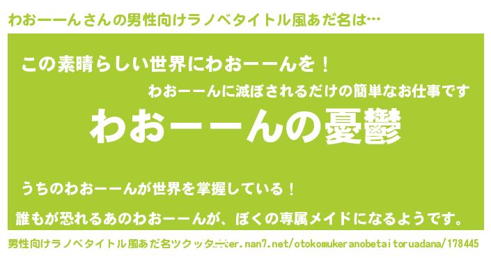 | 胡散臭い通販商品みたいなあだ名 | 『必ず成功するブレスレット…その名も「わおーーん」』 |