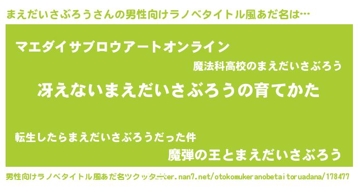| ヒーロー風カッコイイあだ名 | 『スーパーマエダイサブロウ』 |