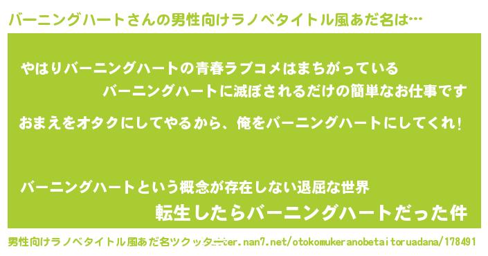 | 胡散臭い通販商品みたいなあだ名 | 『100人中100人が認めたマグネット磁石…その名も「バーニングハート」』 |