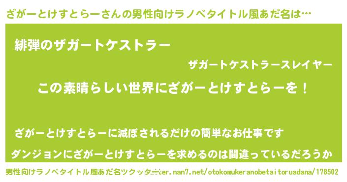 | 意味不明あだ名 | 『住所不定無職ざがーとけすとらー(13歳)』 |