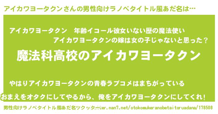 | 女子向けラノベタイトル風あだ名 | 『アイカワヨータクンなんてお断りですっ。』 |