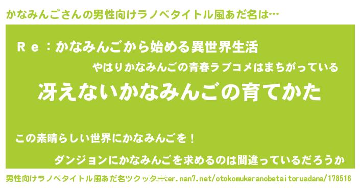 | 胡散臭い通販商品みたいなあだ名 | 『テレビで話題の高麗人参…その名も「かなみんご」』 |