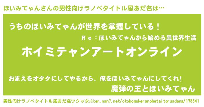 | 肩書あだ名 | 『ほいみてゃん御曹司』 |