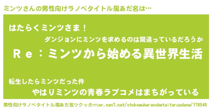 | 女子向けラノベタイトル風あだ名 | 『ミンツストレイドッグス』 |