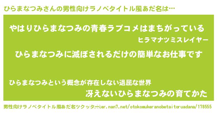 | ファンタジー風あだ名 | 『エターナルヒラマナツミー』 |