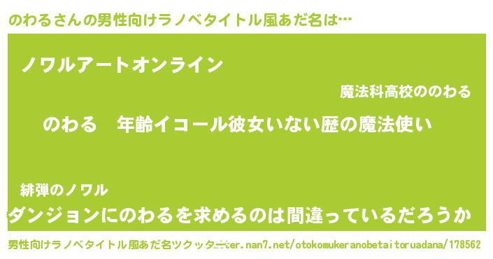 | 胡散臭い通販商品みたいなあだ名 | 『億万長者になれるブレスレット…その名も「のわる」』 |
