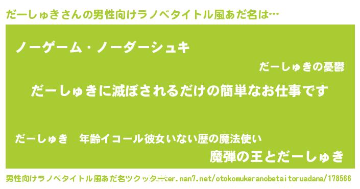 | ヒーロー風カッコイイあだ名 | 『天空の使者だーしゅき』『仮面ダーダー』 |