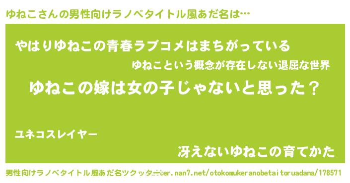 | 女子向けラノベタイトル風あだ名 | 『ゆねこ様がみてる』 |