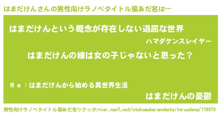 | 女子向けラノベタイトル風あだ名 | 『はまだけん様がみてる』 |