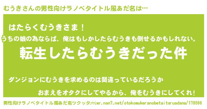 女子向けラノベタイトル風あだ名 | 『むうきの玉の輿計画!』『むうき恋絵巻』 |