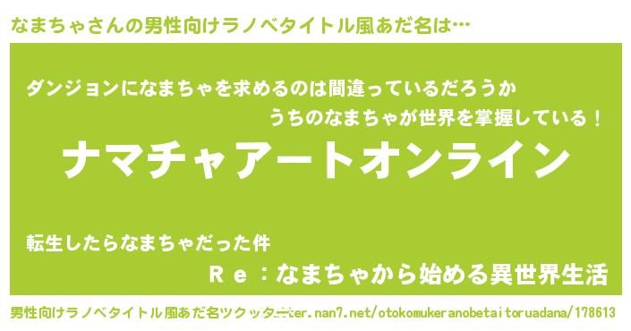 | 意味不明あだ名 | 『ペロリンなまちゃ』『自称なまちゃ』 |