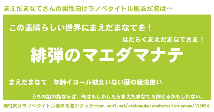| 今でしょ! | 誰がやるか?『まえだまなてさんでしょ!』 |