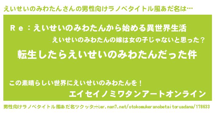 | 料理風あだ名 | 『えいせいのみわたんごはん』 |