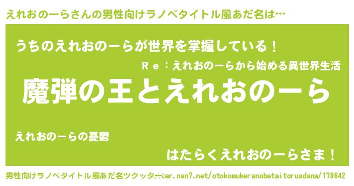 | 意味不明あだ名 | 『住所不定無職えれおのーら(6歳)』 |