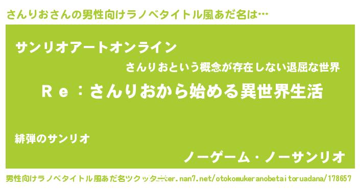 | 女子向けラノベタイトル風あだ名 | 『闇のさんりお』『さんりお恋絵巻』 |
