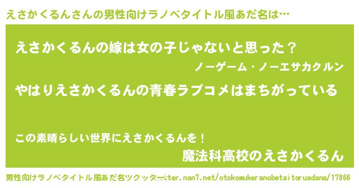 | ファンタジー風あだ名 | 『エターナルエサカクルンー』 |