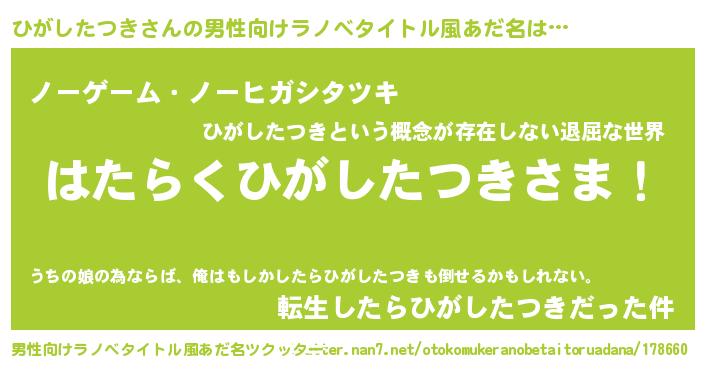 | 胡散臭い通販商品みたいなあだ名 | 『100人中100人が認めたイリジウム磁石…その名も「ひがしたつき」』 |
