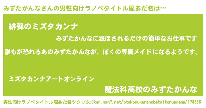 みずたかんなさんの男性向けラノベタイトル風あだ名をツクッター!