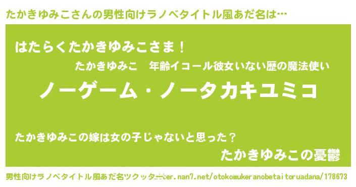 | 伝説のあだ名 | 『救世主となる占い師たかきゆみこ』 |
