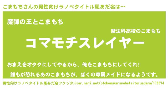 | ヘコむあだ名 | 『こまもち(笑)』『こまもー』『豆乳』 |
