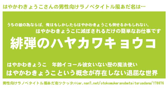 | 意味不明あだ名 | 『はやかわきょうこフォーエバー』 |