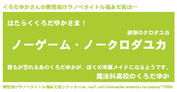 | 女子向けラノベタイトル風あだ名 | 『死神くろだゆかの再婚』 |