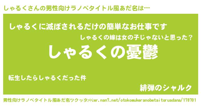 | 胡散臭い通販商品みたいなあだ名 | 『必ず成功する水晶球…その名も「しゃるく」』 |