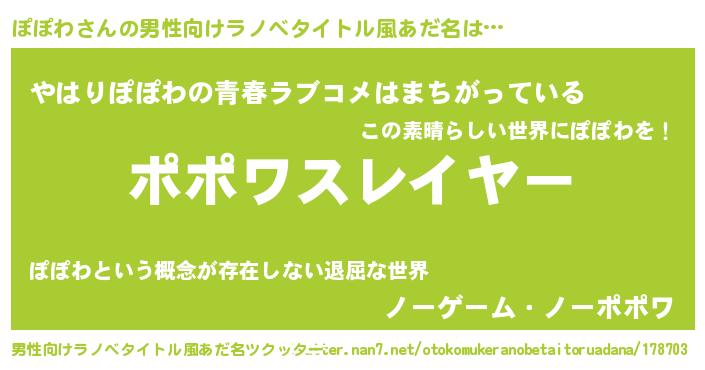 | ヘコむあだ名 | 『つくし』『ぽぽわ(笑)』『ぽぽお』 |