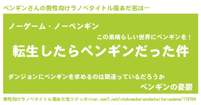 ぺンギンさんの男性向けラノベタイトル風あだ名をツクッター!