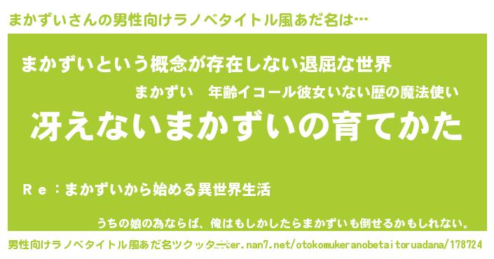 | 胡散臭い通販商品みたいなあだ名 | 『来世でも幸せになれる健康食品…その名も「まかずい」』 |