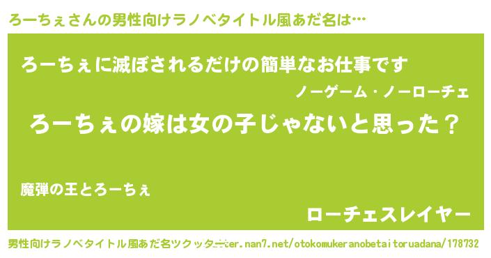 | ヒーロー風カッコイイあだ名 | 『天弓騎士ロー』『天空の使者ろーちぇ』 |