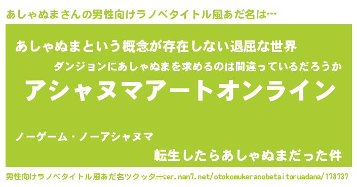 | 胡散臭い通販商品みたいなあだ名 | 『億万長者になれる霊験あらたかなお札…その名も「あしゃぬま」』 |