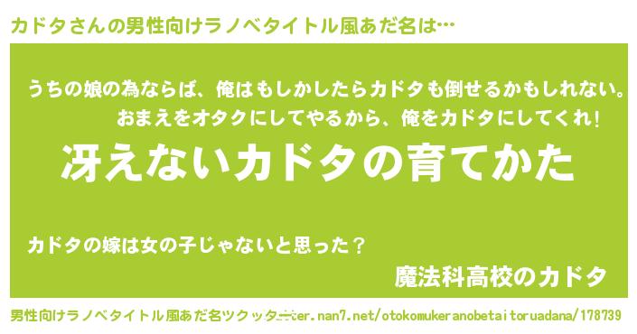 | 女子向けラノベタイトル風あだ名 | 『シンデレラカドタ家の靴箱館』 |
