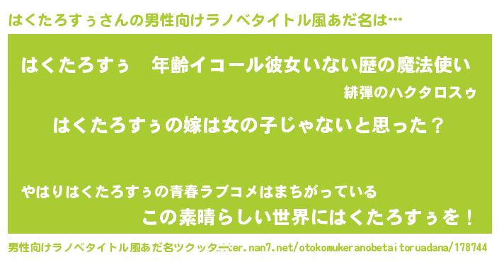| 意味不明あだ名 | 『とにかく怪しいはくたろすぅ』 |