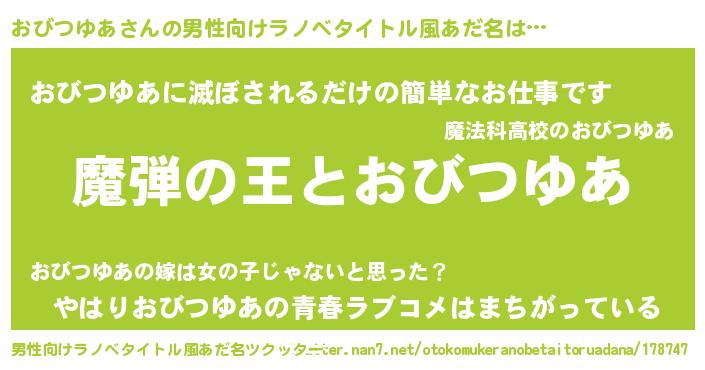 | 意味不明あだ名 | 『住所不定無職おびつゆあ(53歳)』 |