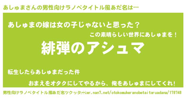 | 意味不明あだ名 | 『とにかく怪しいあしゅま』 |