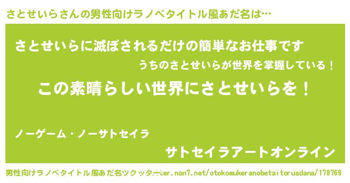 | ヒーロー風カッコイイあだ名 | 『仮面サトダー』『スーパーサトセイラ』 |