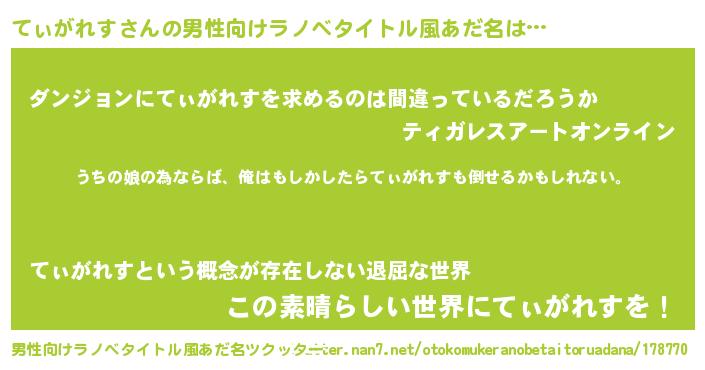 | 胡散臭い通販商品みたいなあだ名 | 『世界が平和になる高級そうな絵画…その名も「てぃがれす」』 |