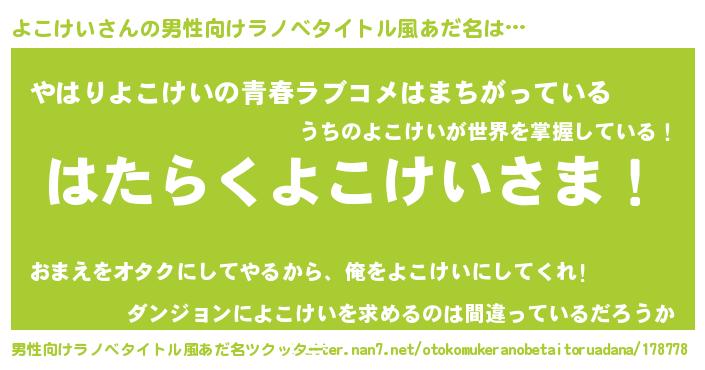 | 胡散臭い通販商品みたいなあだ名 | 『世界が平和になる高級そうな絵画…その名も「よこけい」』 |