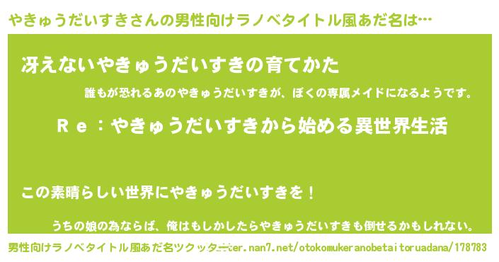 | 女子向けラノベタイトル風あだ名 | 『闇のやきゅうだいすき』 |