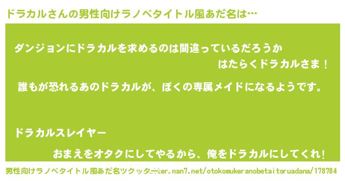 | 意味不明あだ名 | 『永久保存ドラカル』『自称ドラカル』 |