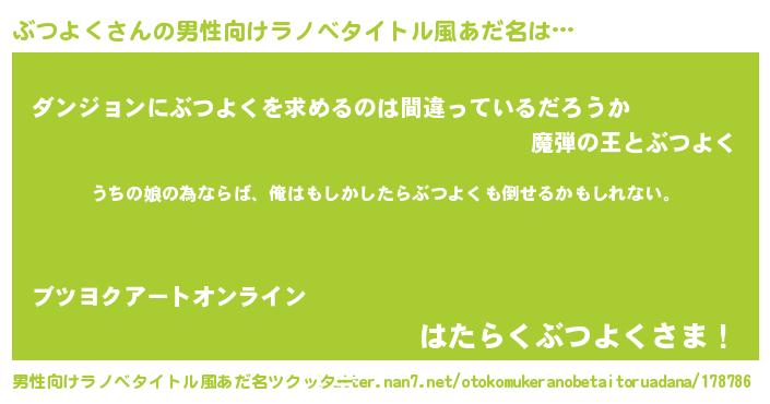 | ファンタジー風あだ名 | 『エターナルブツヨクー』『ブツフェル』 |