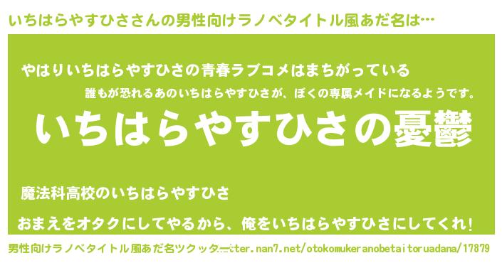 | 胡散臭い通販商品みたいなあだ名 | 『モテモテ間違いなし霊験あらたかなお札…その名も「いちはらやすひさ」』 |